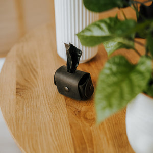 Šuns išmatų maišelių laikiklis, Odinis laikiklis