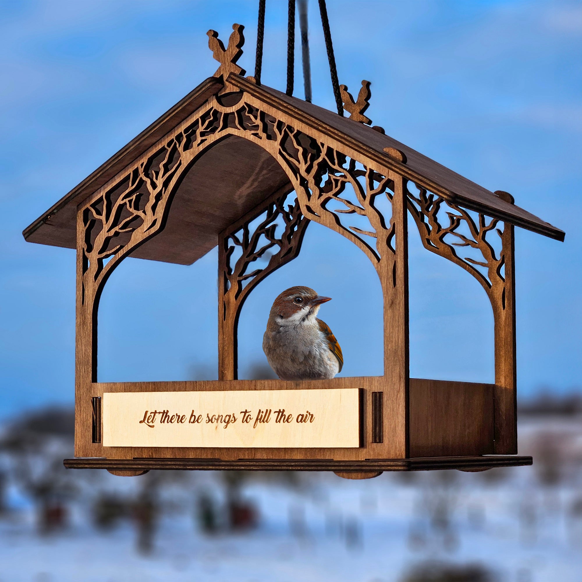 Ši graži paukščių lesyklėlė yra pagaminta iš aukštos kokybės beržo faneros, puikus aksesuaras jūsų namų sodui. Tai pritrauks daugelio mažų paukščiukų dėmesį. Ji yra tikrai graži, elegantiškai sukurta ir lengvai surenkama. Viskas, ką jums reikia padaryti, tai rasti jaukią ir gražią vietą, kur ją pakabinti.