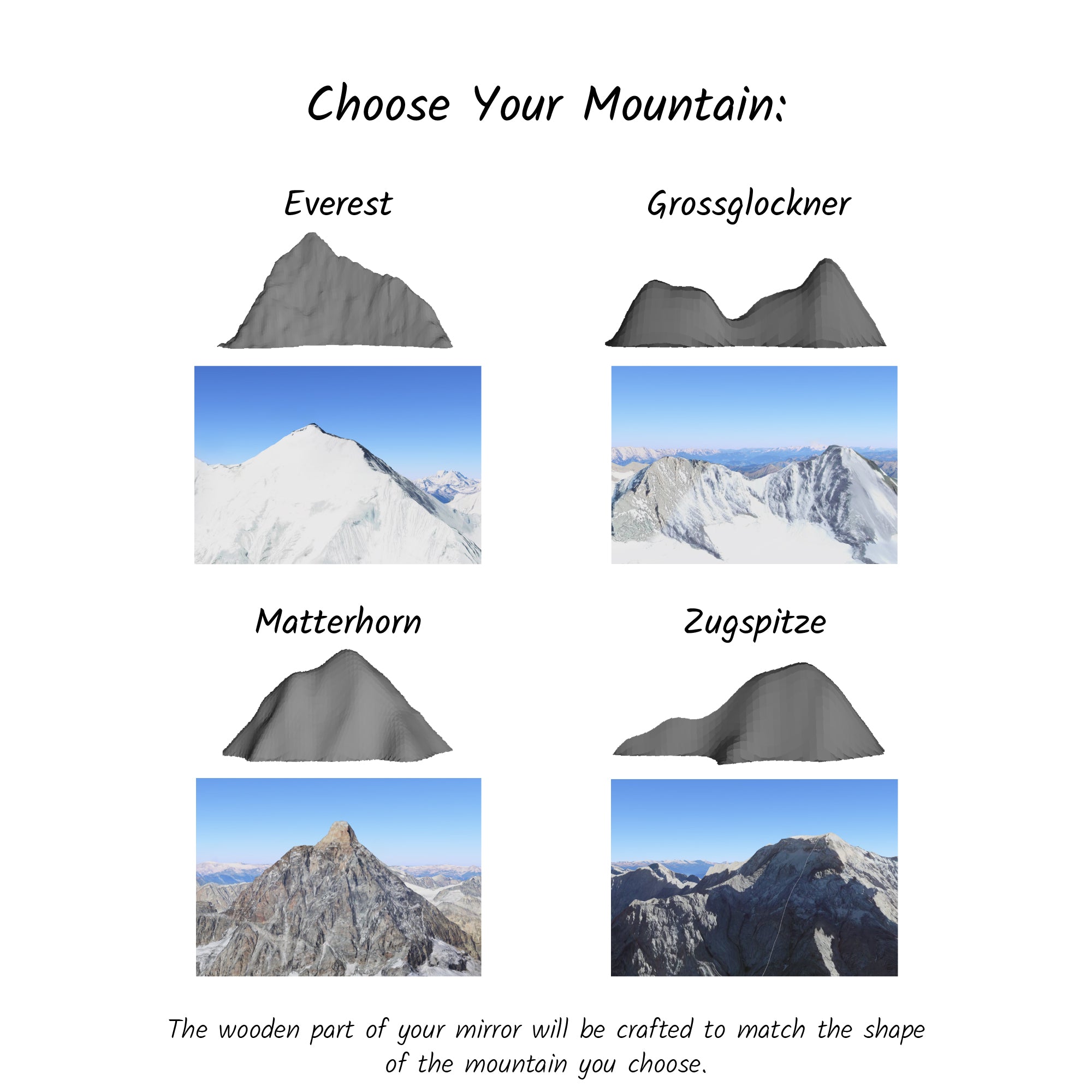 • Autentiška kalnų forma: Kiekvienas veidrodis turi tikrą įžymaus kalno topografiją, suteikdamas išskirtinį vaizdą.