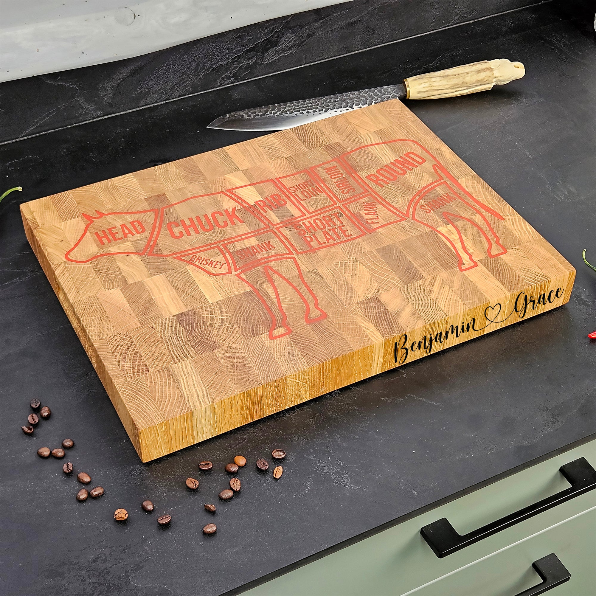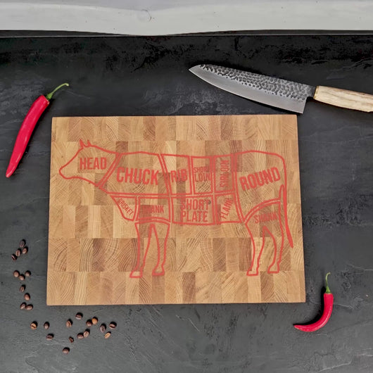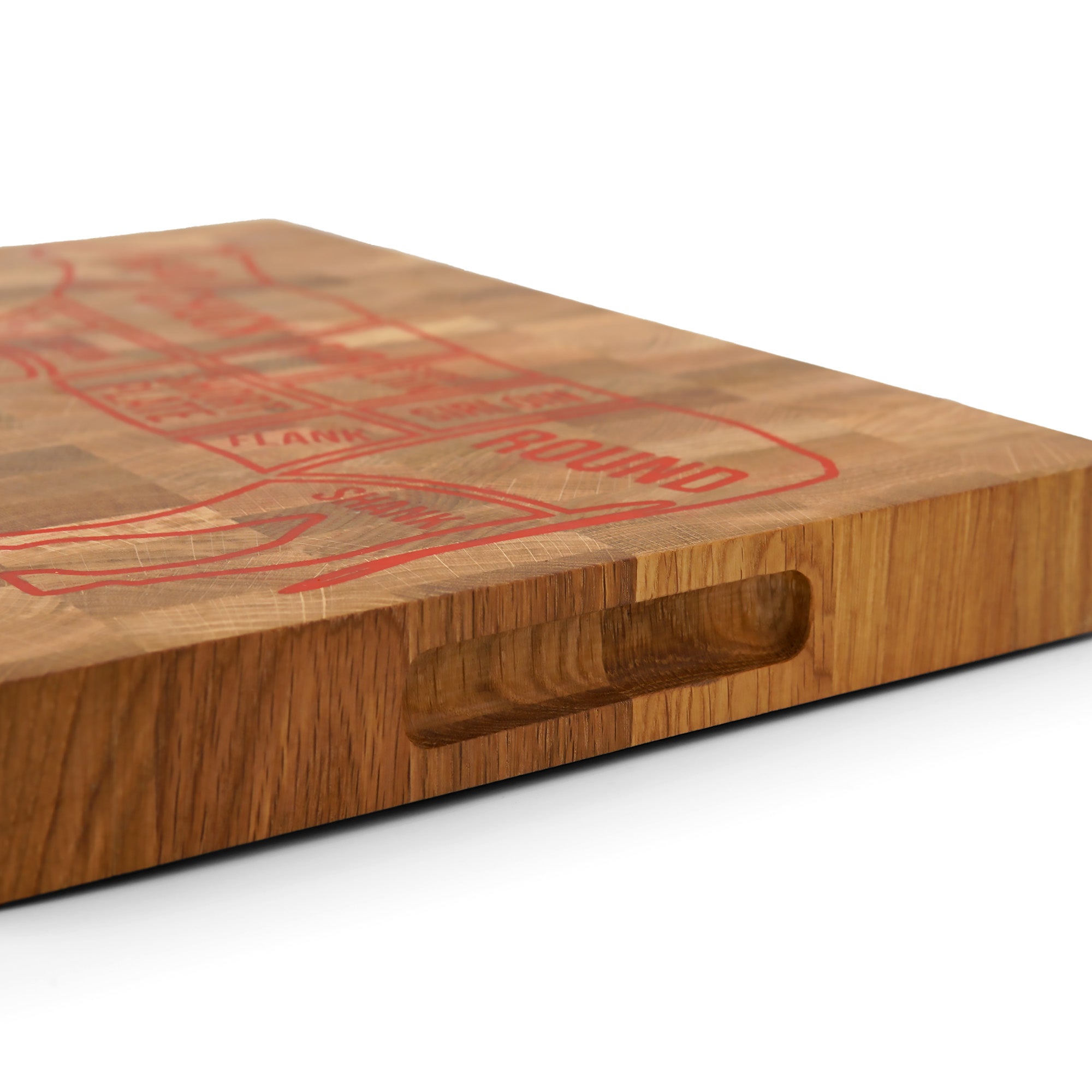 Rankų darbo ąžuolinė pjaustymo lentelė, tai tvirtas ir stilingas virtuvės aksesuaras. Patogios rankenos leidžia lengvai ją pernešti, o dekoratyvus karvės paveikslėlis suteikia žaismingą akcentą. Medinė pjaustymo lenta lengvai prižiūrima ir puikiai tinka kaip dovana ar stilingas virtuvės elementas.