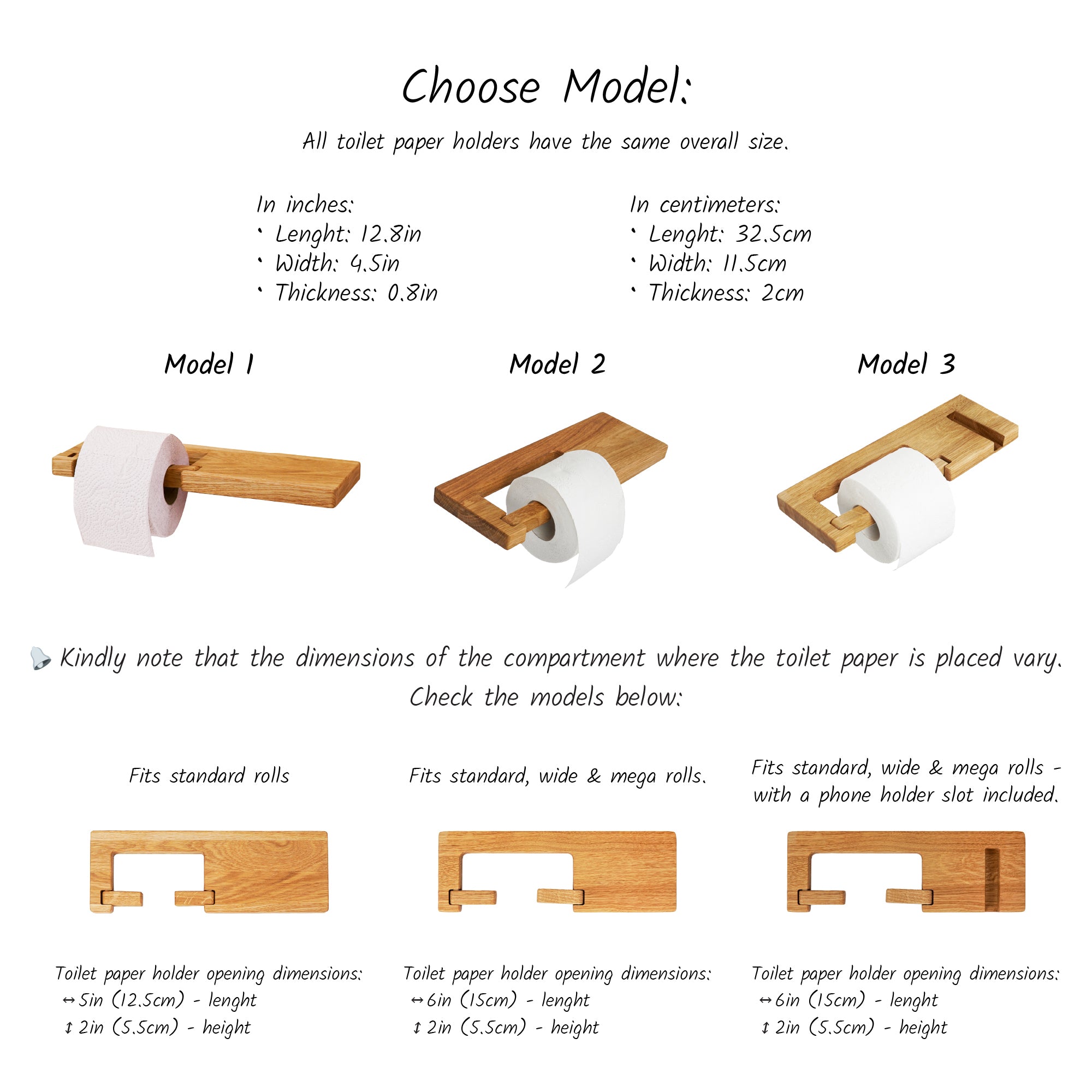 Atidžiai peržiūrėkite modelių nuotraukas ir matmenis, kad išsirinktumėte jums tinkamiausią variantą. Ritinėlių dydis gali skirtis priklausomai nuo gamintojo. Prieš pateikdami užsakymą, įsitikinkite, kad jūsų ritinėlis tinka laikiklio angos matmenims.