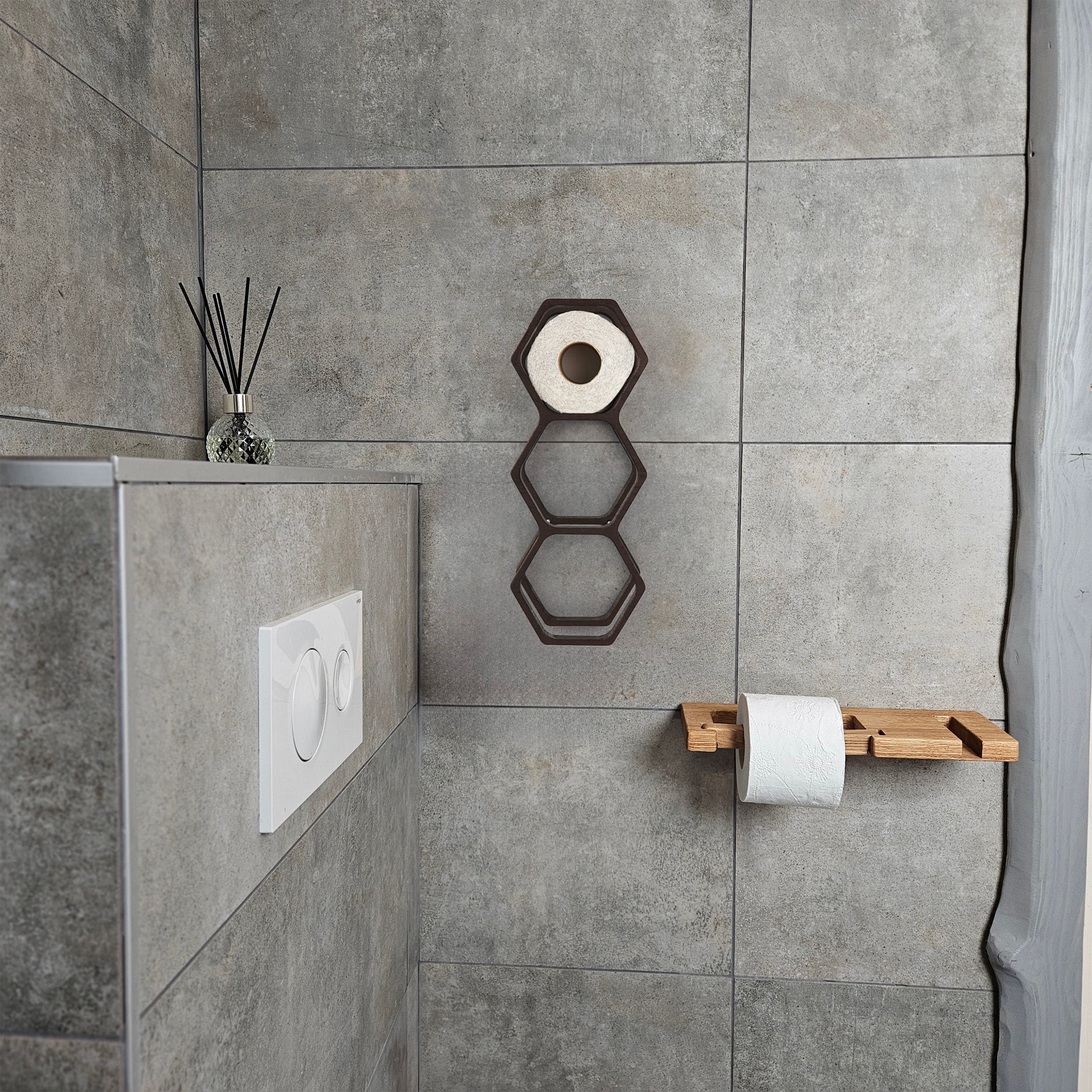 Medinis tualetinio popieriaus laikiklis su korio formos dizaino elementais, tvirtinamas ant sienos. Korys suteikia vientisą ir tvarkingą išvaizdą, lengvai derančią prie įvairių vonios interjerų. Laikiklis neužima daug vietos, ritinys pasiekiamas patogiai ir laikosi stabiliai. Paprastas sprendimas, kai norisi natūralaus medžio akcento.